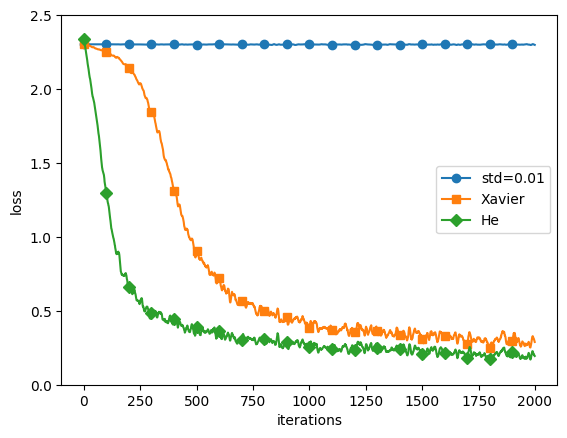 - Xavier 초깃값과 He 초깃값(ReLu함수)이 효과적