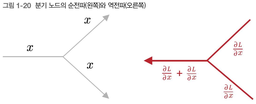 - 분기 노드 : 상류에서 온 기울기들의 합