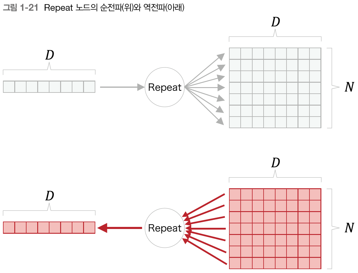 (sum 노드의 순전파가 repeat노드의 역전파, sum 노드의 역전파가 repeat노드의 순전파)