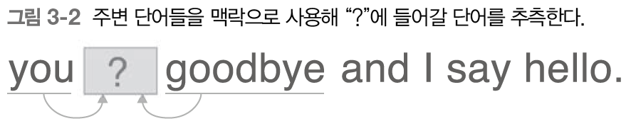 - 맥락 : 단어들의 목록 ("you", "goodbye")