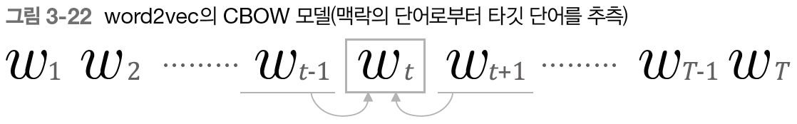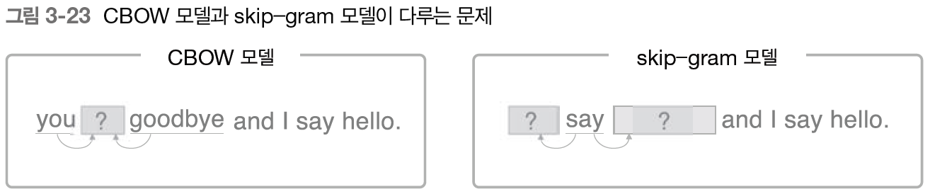 : CBOW에서 다루는 맥락과 타깃을 역전시킨 모델