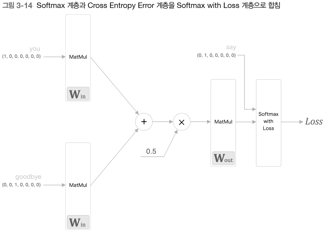=> 음의 로그 가능도 :CBOW모델의 손실 함수