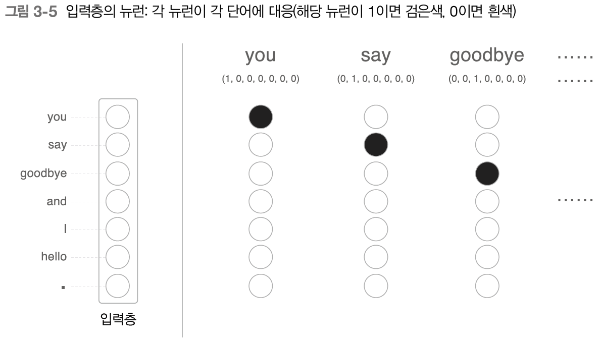 - 원핫 표현 : 벡터의 원소 중 하나만 1이고 나머지는 모두 0인 벡터
