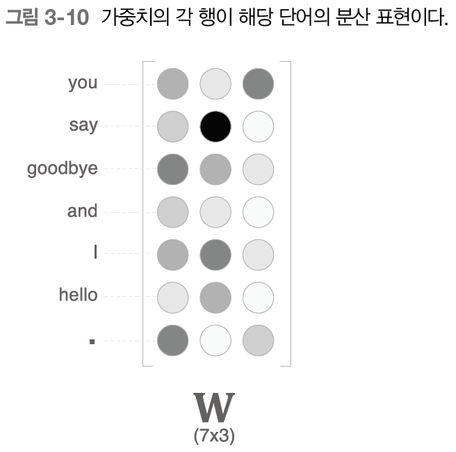 - 각 행에는 해당 단어의 분산 표현이 담겨 있음