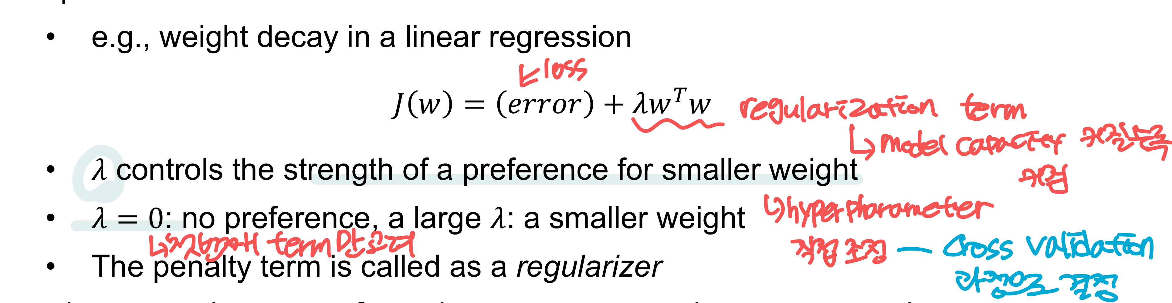 -> traininge error 희생하고 원하는 pharameter 얻는 것 - 예시)