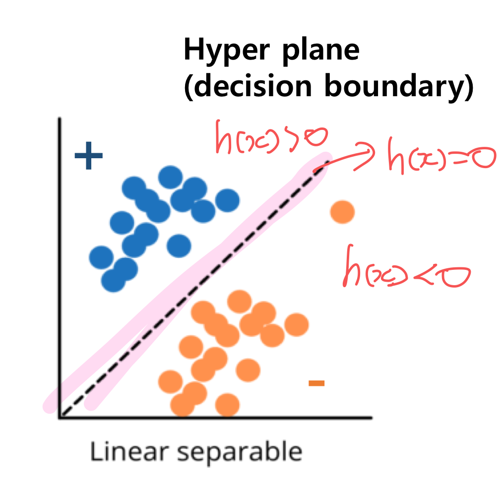 h(x) = sign(W^Tx) - Loss function (regression과 다른 loss function)