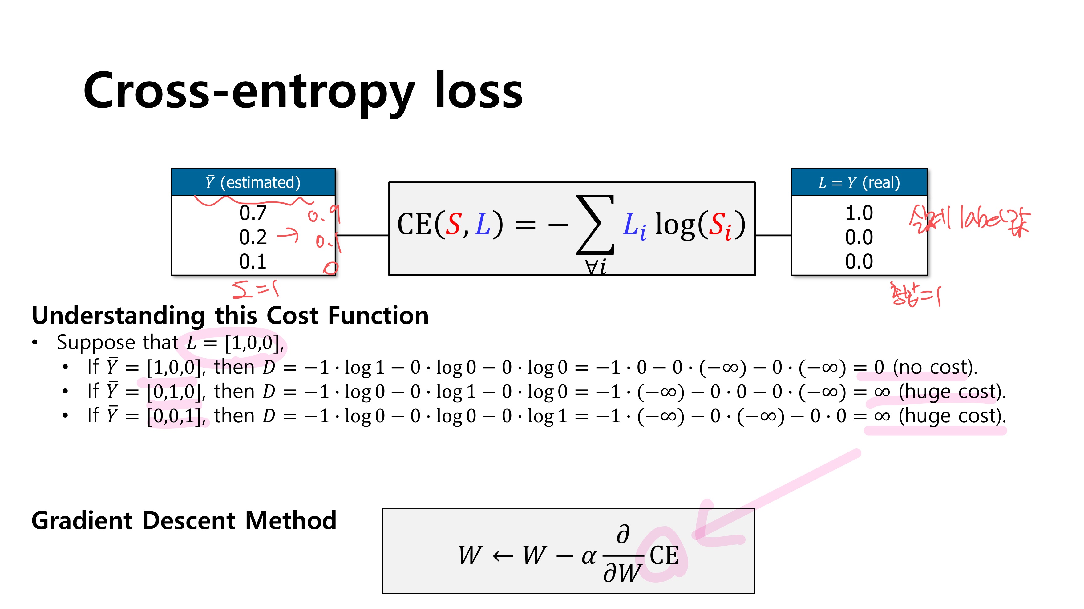 - one hot encoding된 label 값과 확률값을 비교하여 loss 계산 => 학습