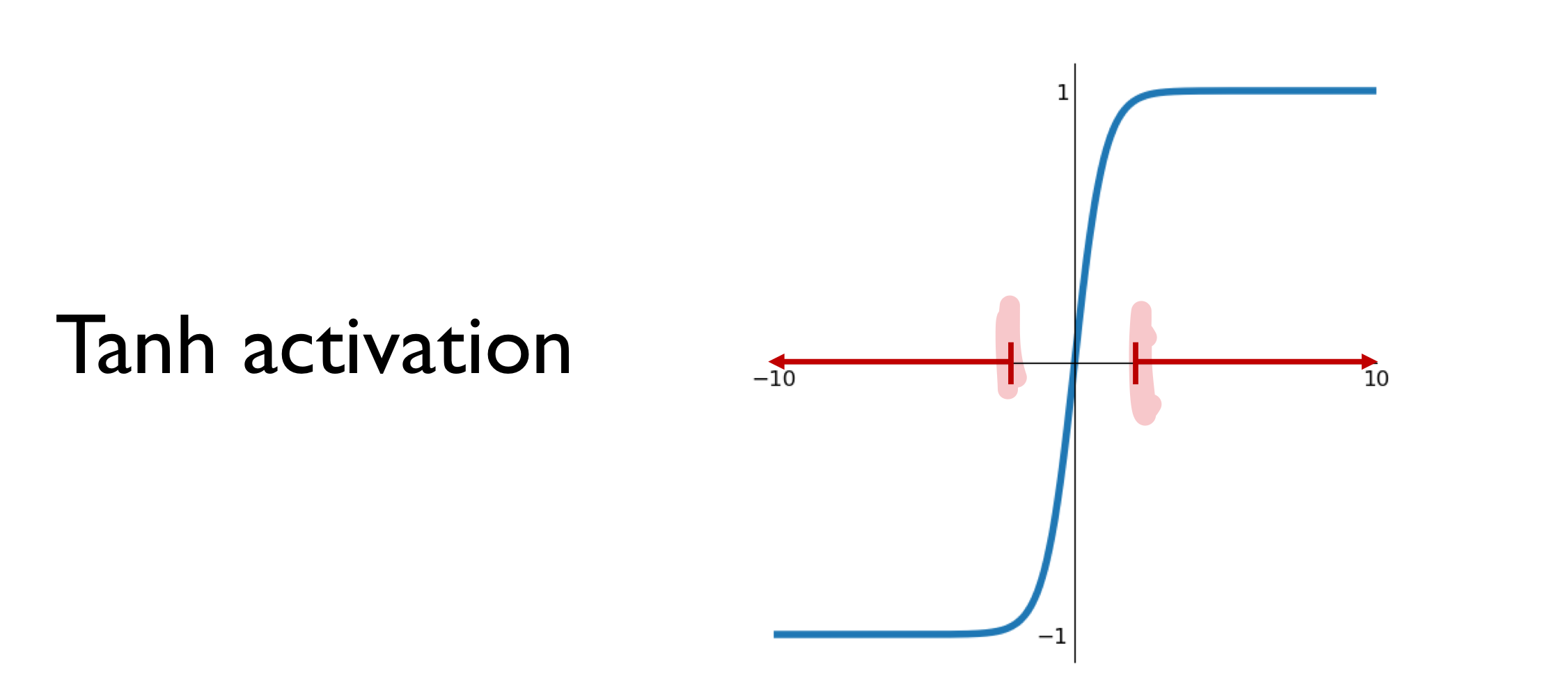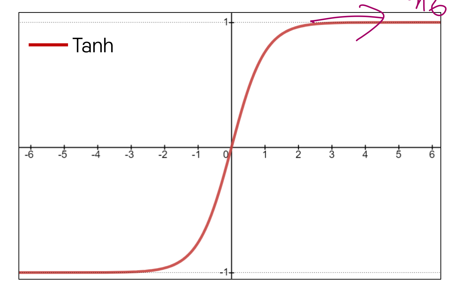 -> 문제: gradient 값의 최댓값이 1/4 => 앞쪽으로 갈수록 gradient vanishing 문제 - tanh activation : -1에서 1사이의 수로 맵핑